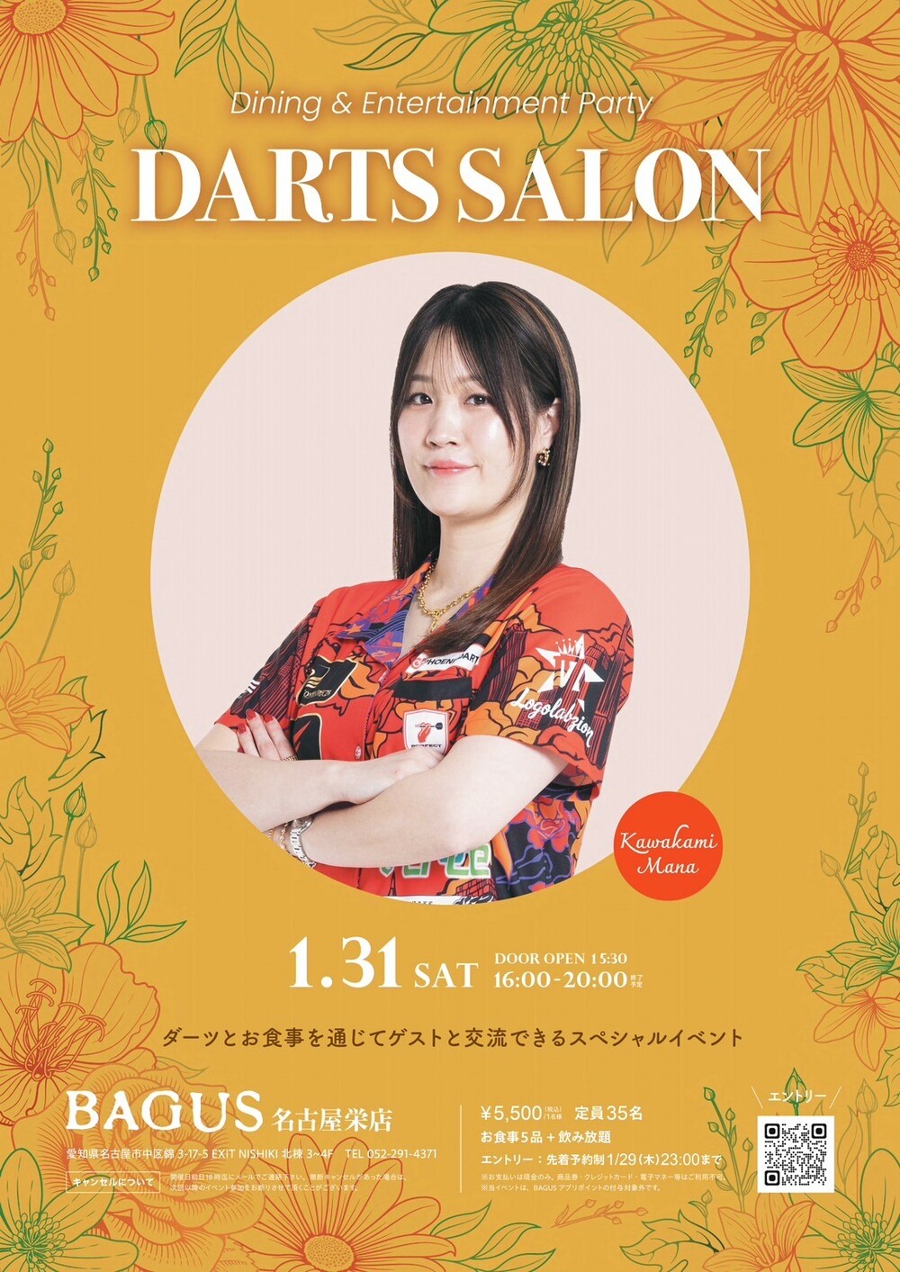 【1/31(土)】川上真奈プロによる『DARTS SALON』をバグース名古屋栄店で開催!