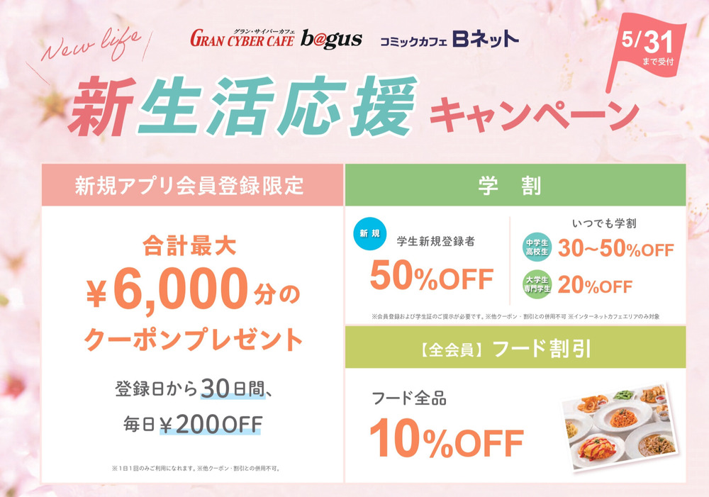 3/20(金)からBAGUSネットカフェ全店で『春の新生活応援キャンペーン』開催!