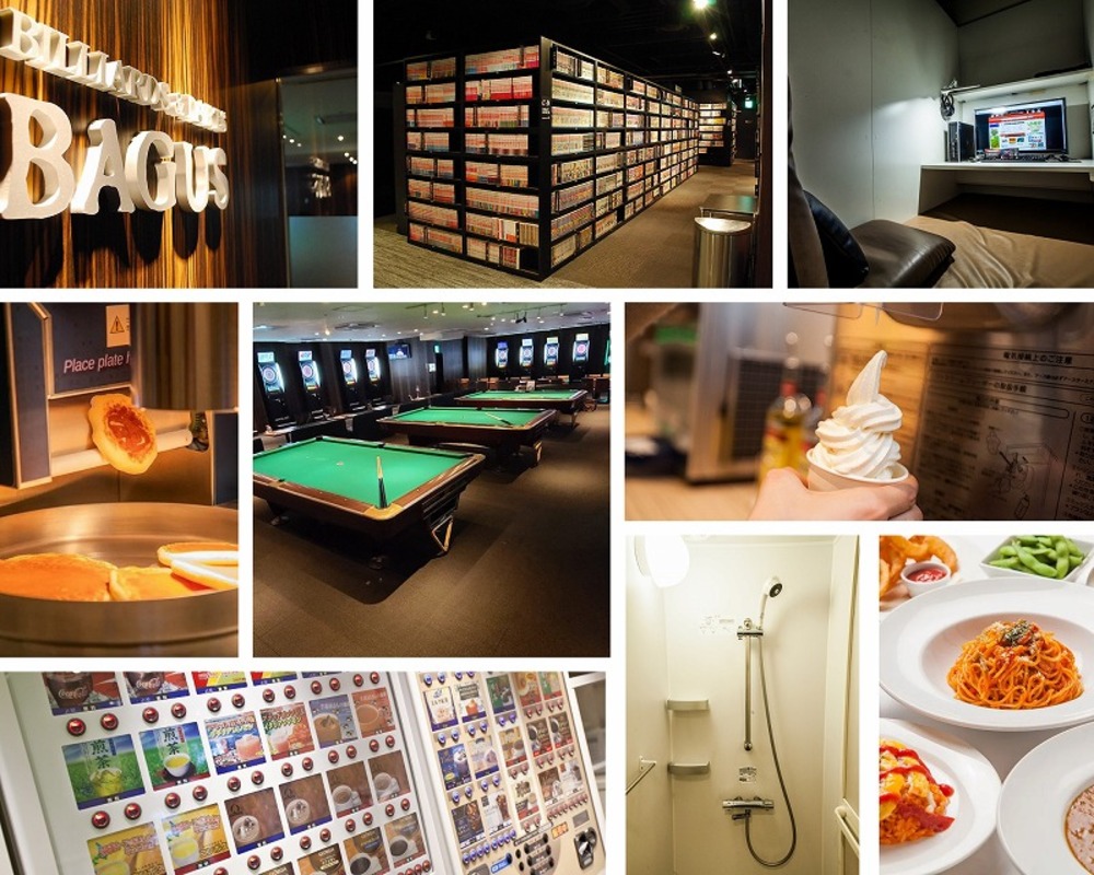 池袋サンシャイン60通り沿いのビル4階に位置する「グランサイバーカフェ バグース 池袋店」は、インターネットカフェエリア、アミューズメントエリアを備えた複合カフェ。インターネットカフェエリアには、コミック約3万冊を揃え、話題の最新刊から昔懐かしいタイトルまでご用意しております。また60種類以上のソフトドリンクや季節ごとに代わるソフトクリームなどフリーサービスも充実。プライベートが保たれたブース席や防音設備を整えた完全個室、広めのシアタールームなど様々なお席でお寛ぎいただけます。アミューズメントエリアには、ビリヤードや最新鋭ダーツ機、卓球を完備。リーズナブルな価格でレジャーをお楽しみいただけます。さらに店内にはカラオケとダーツが同時に楽しめるラグジュアリールームも備え、ビジネスシーンでもご利用いただけるハイブリッドな複合施設となっております。