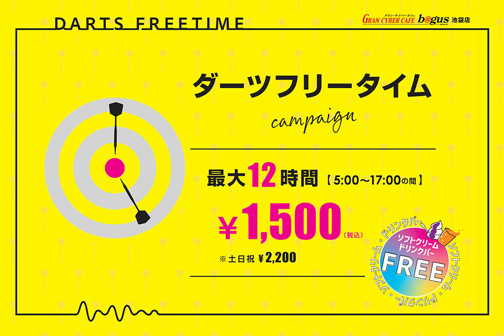 ダーツフリータイム【最大12時間 ¥1,500円(税込)】好評実施中!
