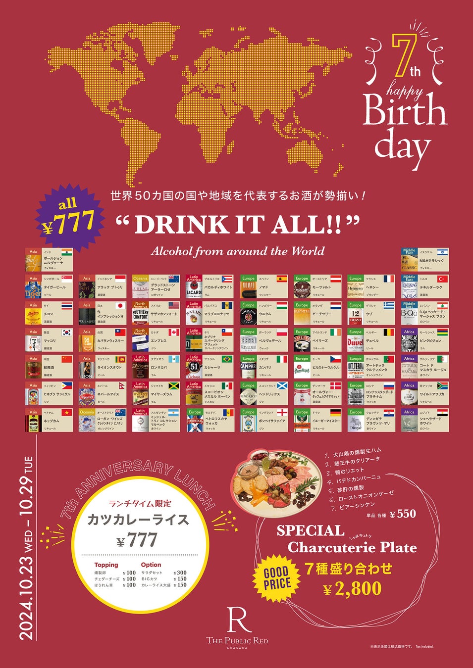 赤坂「パブリックレッド」はお陰様で7周年!“7”にちなんだ周年記念フェアを期間限定で開催