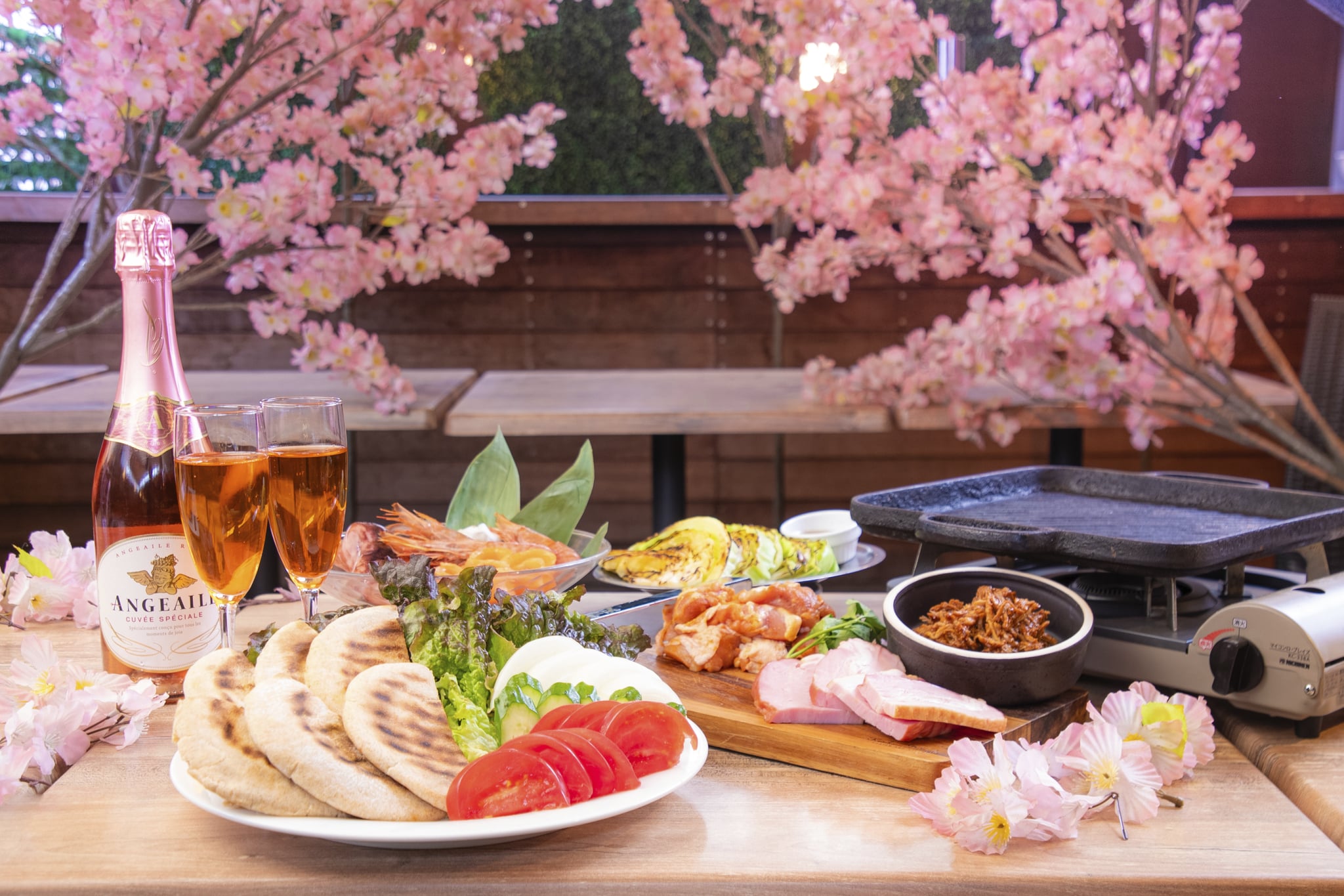 春風そよぐ赤坂見附で、桜と楽しむ特別なBBQシーズンが到来。 春限定の桜テラスで、お花見気分を味わいながら贅沢バーベキューはいかがですか? 乾杯は華やかなロゼスパークリングで。特別なひとときを彩ります。 プライベート感満点のVIPテラス付個室は、天候に左右されないルーフテラス仕様。 さらにカラオケ&ダーツ無料(投げ放題)の特別な個室を貸切でご利用可能。 接待や交流会、懇親会はもちろん、春のお花見パーティーにもぴったり。 ワンランク上のBBQ体験をぜひお楽しみください。