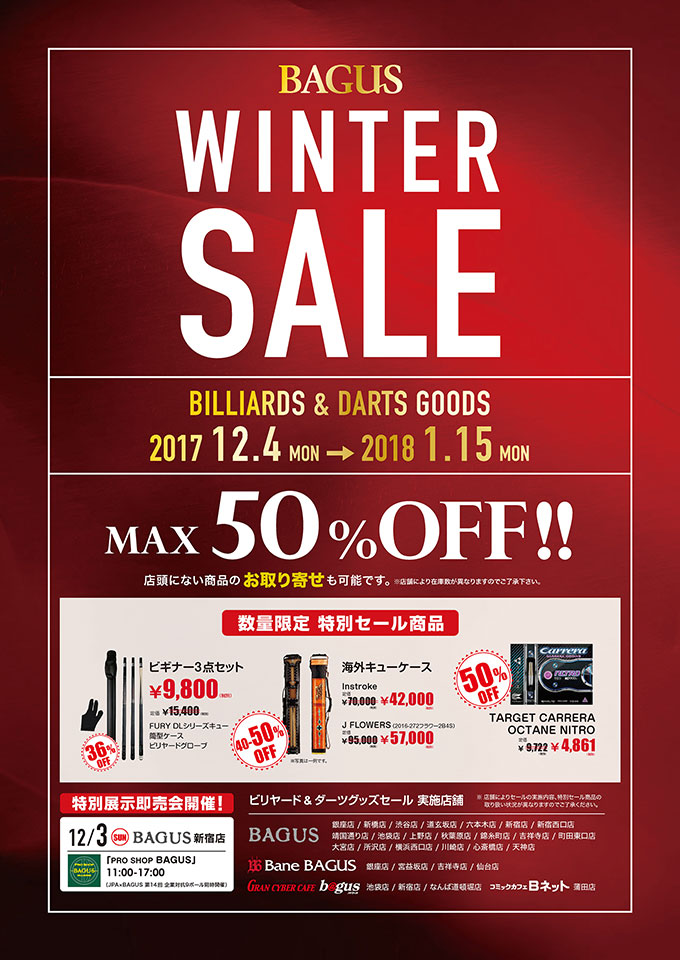 2017年12月4日(月) ~ 2018年1月15(月) までBAGUSウィンターセール開催!
