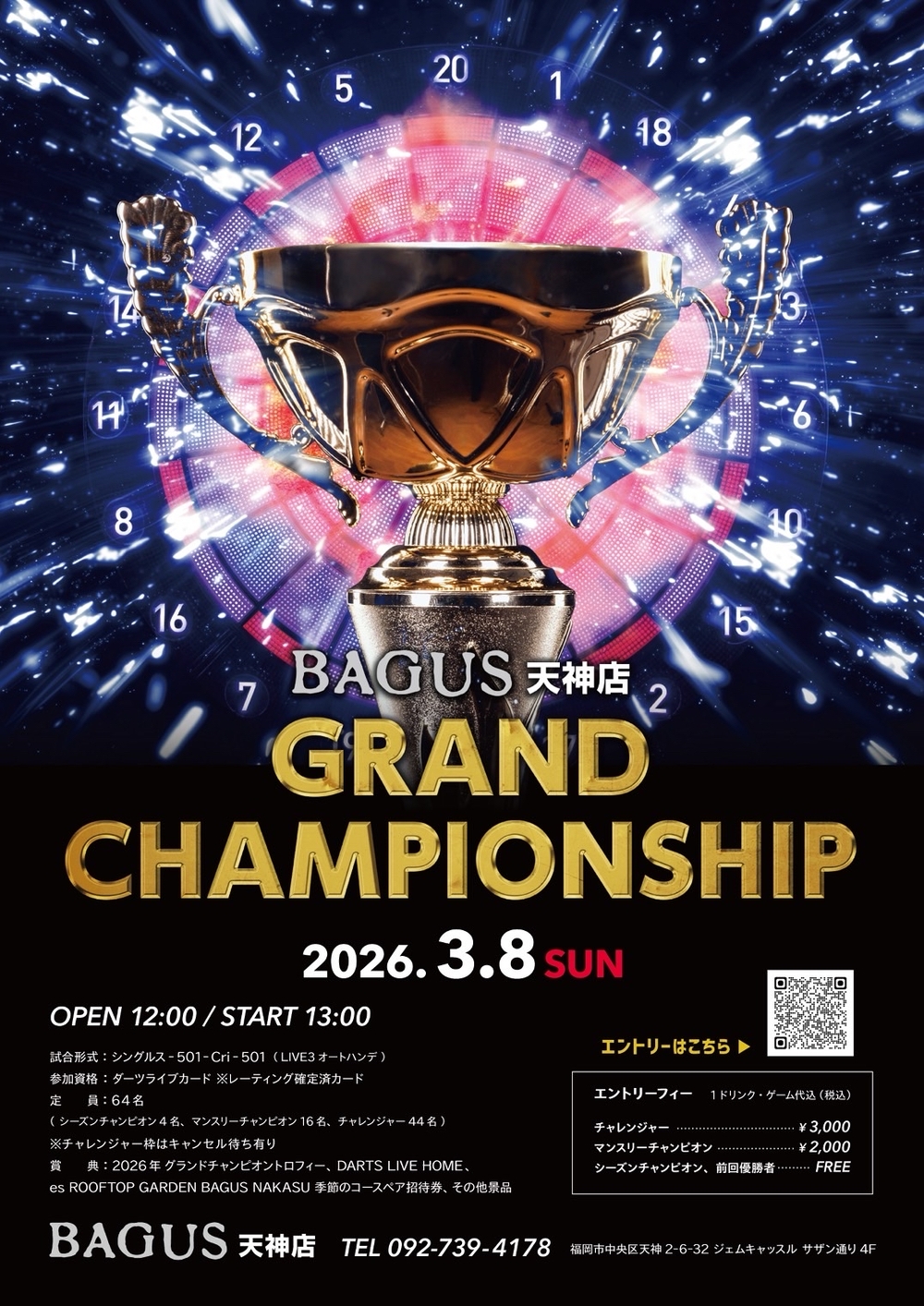 3/8(日)バグース天神店にて「GRAND CHAMPIONSHIP」開催!