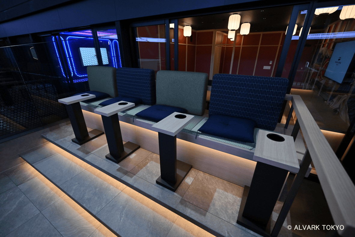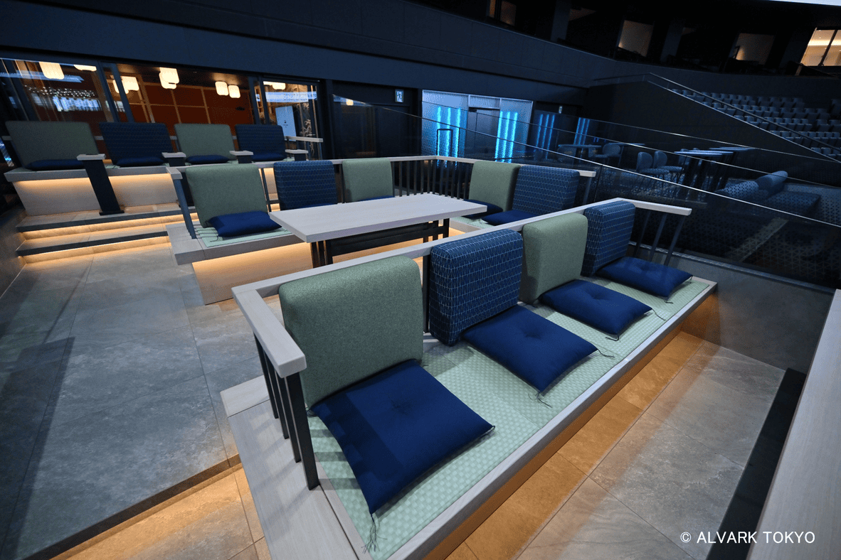 「スポーツの高揚感」×「洗練された上質な空間」×テラスの持つ「開放感と特別感」を融合した他に類をみないユニークな空間での観戦体験が楽しめる。 ベンチ反対側の中央に位置するJAPAN AIRLINES テラススイートは、個室ならではのきめ細やかなサービスとテラス席での開放感と特別感を味わえる、TOYOTA ARENA TOKYOで最もユニークな空間です。また、JAPAN AIRLINES テラススイート利用者限定のサービスや体験も準備しており、"思い出に残る"特別な観戦体験を味わうことができます。