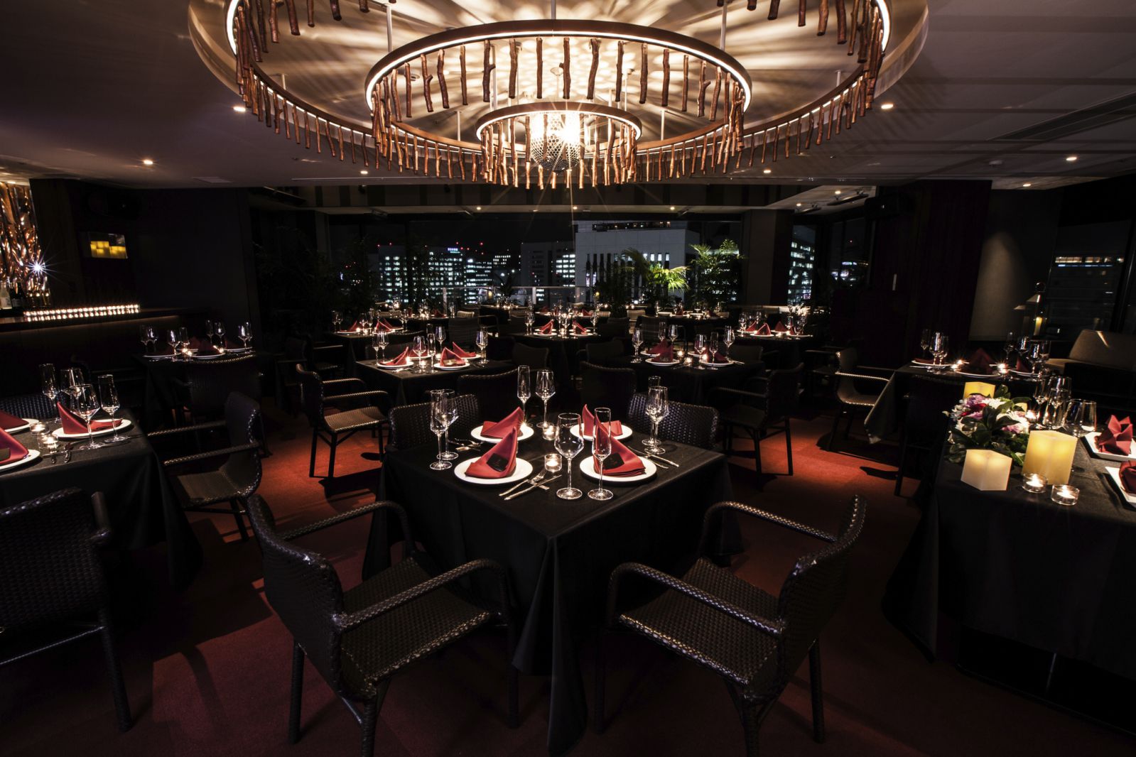 夜景が見えるラグジュアリー個室や深紅の絨毯が印象的なバーラウンジなど、非日常的な空間で至極のひとときをお過ごしいただけます。