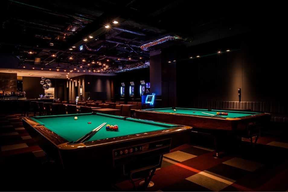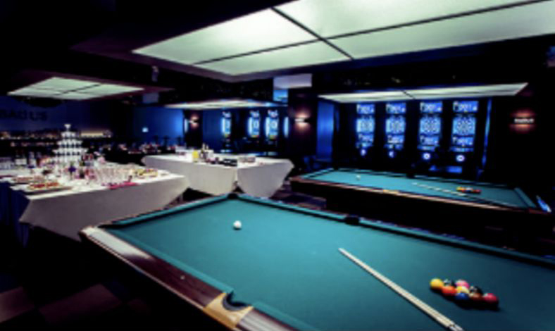 カジュアルな立食スタイルのパーティーと相性抜群のビリヤード。ゲームを通じてゲストが交流しやすく、和やかな雰囲気のパーティーに!