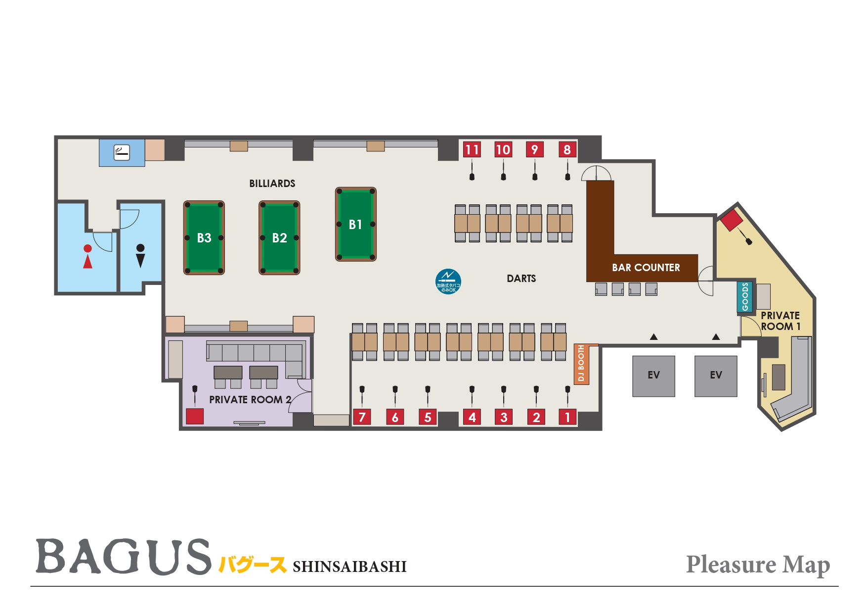 ¥3,500 / スナックプレート+飲み放題付 / 2時間 / ビリヤードフリー