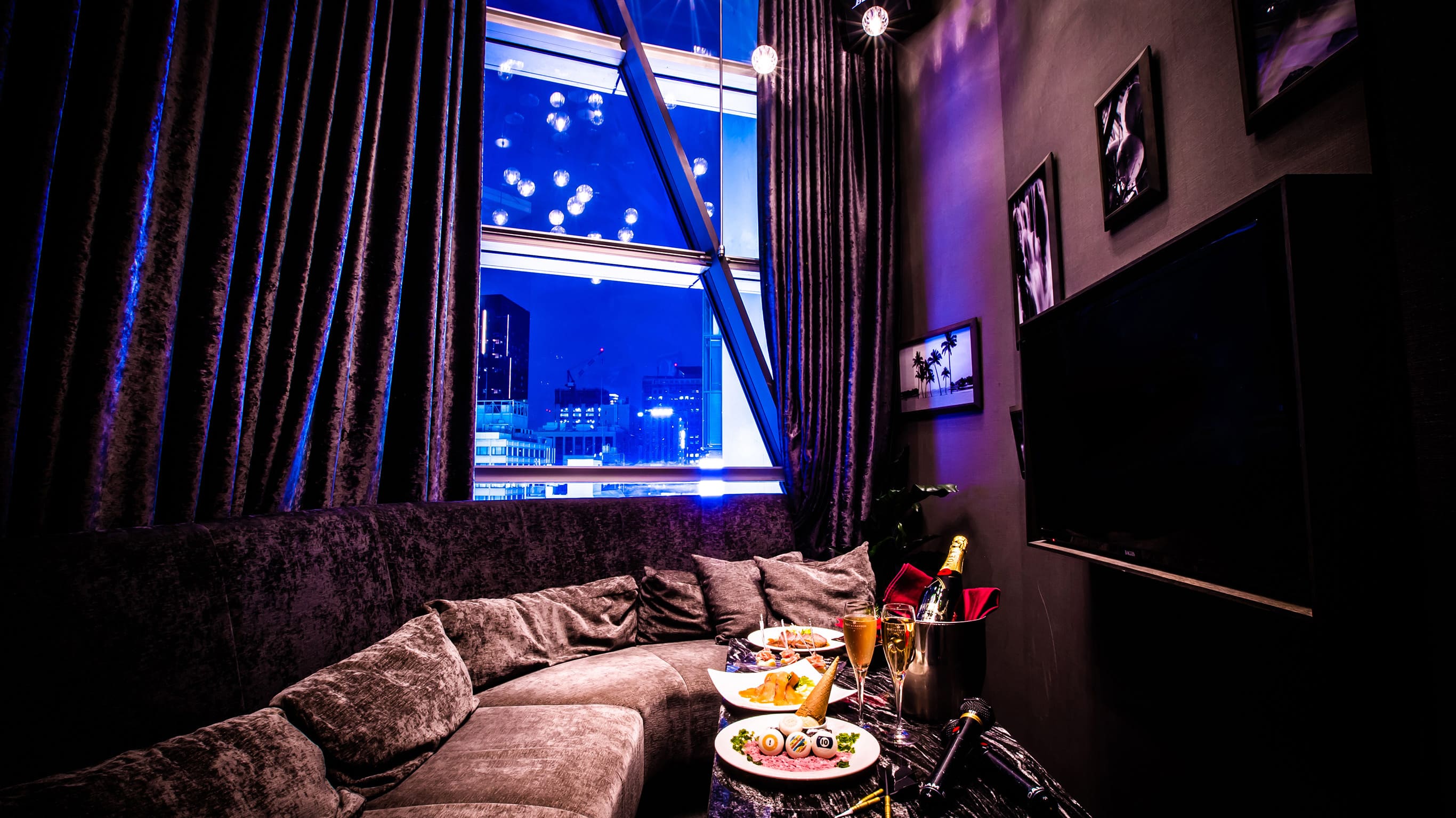 バグース心斎橋店はラグジュアリーなVIP個室を2部屋完備。大阪の夜景が見えるVIP個室は、カラオケとダーツを備え、少人数のパーティーに最適です。夜景を眺めながら贅沢なひとときをお過ごしいただけます。