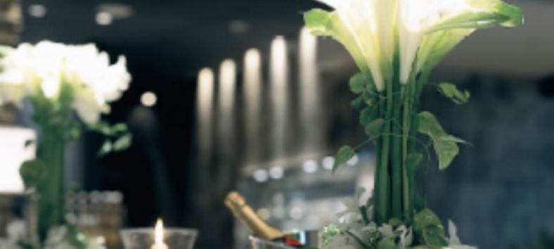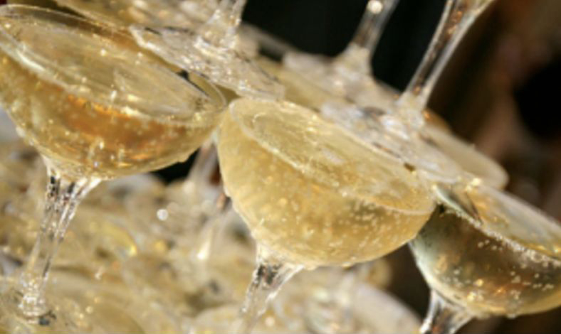 美しく並ぶグラスにキラキラと煌めく繊細な泡。ラグジュアリーな演出で会場が一段と華やかに!