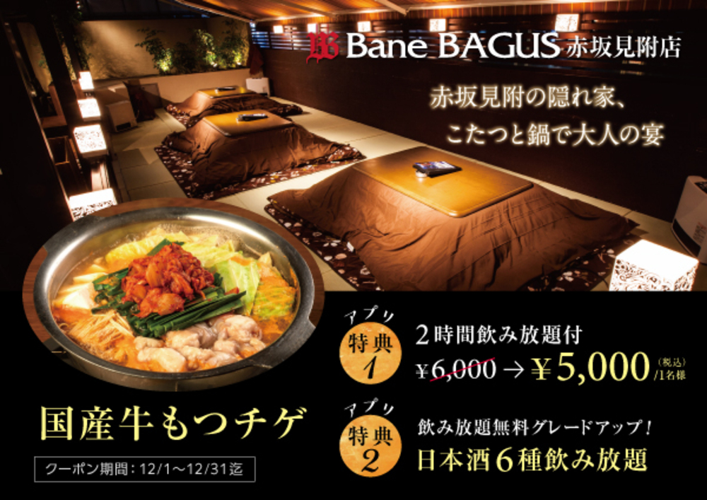 ■特典内容:BAGUSアプリ会員様限定!「国産もつチゲ」を特別価格で提供