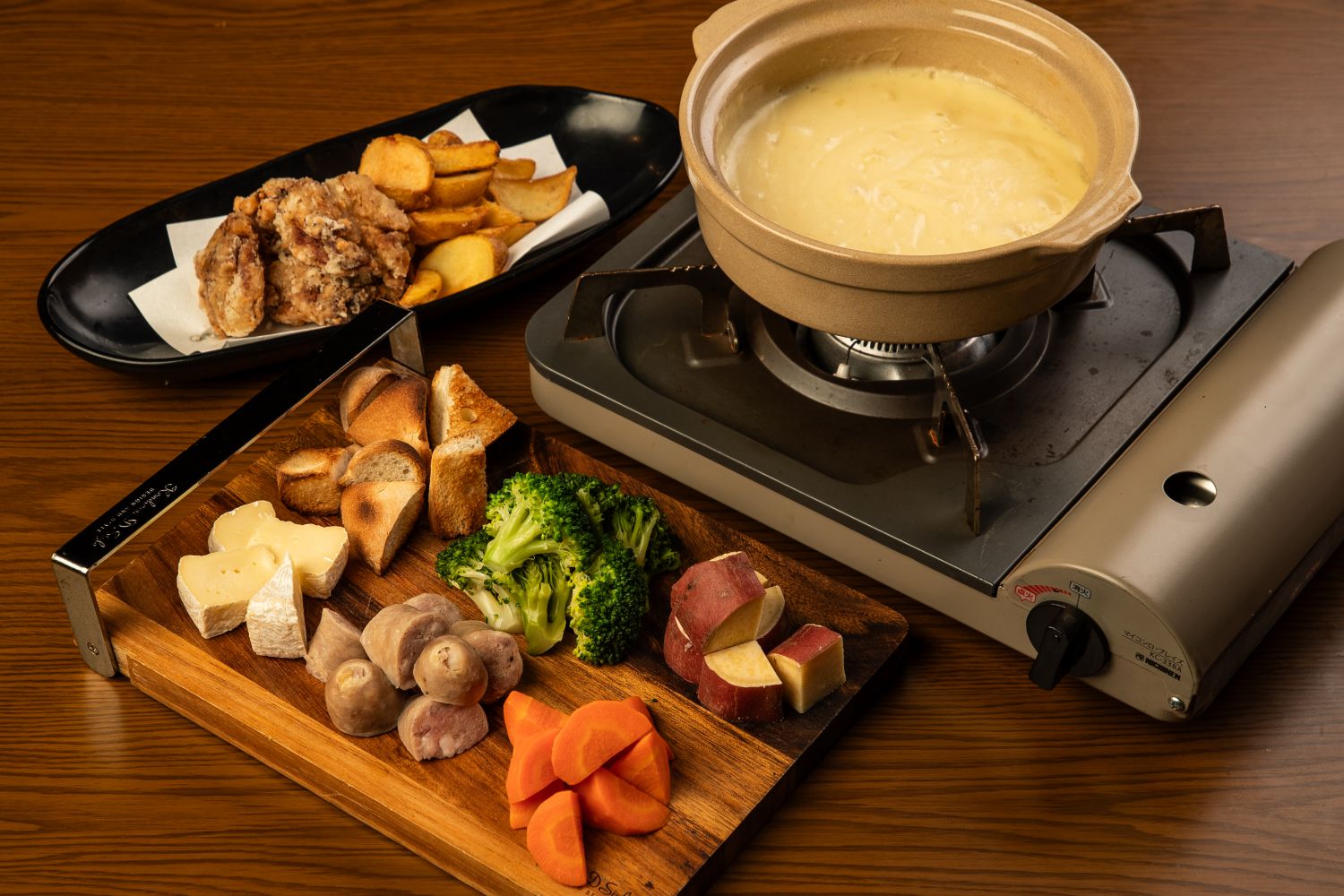 とろけるカマンベールチーズを贅沢に使ったチーズフォンデュ。 ジャンボソーセージ、ブロッコリー、にんじん、さつまいもなどの具材をたっぷりディップして、夜の終わりに“ちょっと背徳”な贅沢を楽しむ、濃厚で満足感たっぷりの一皿です。