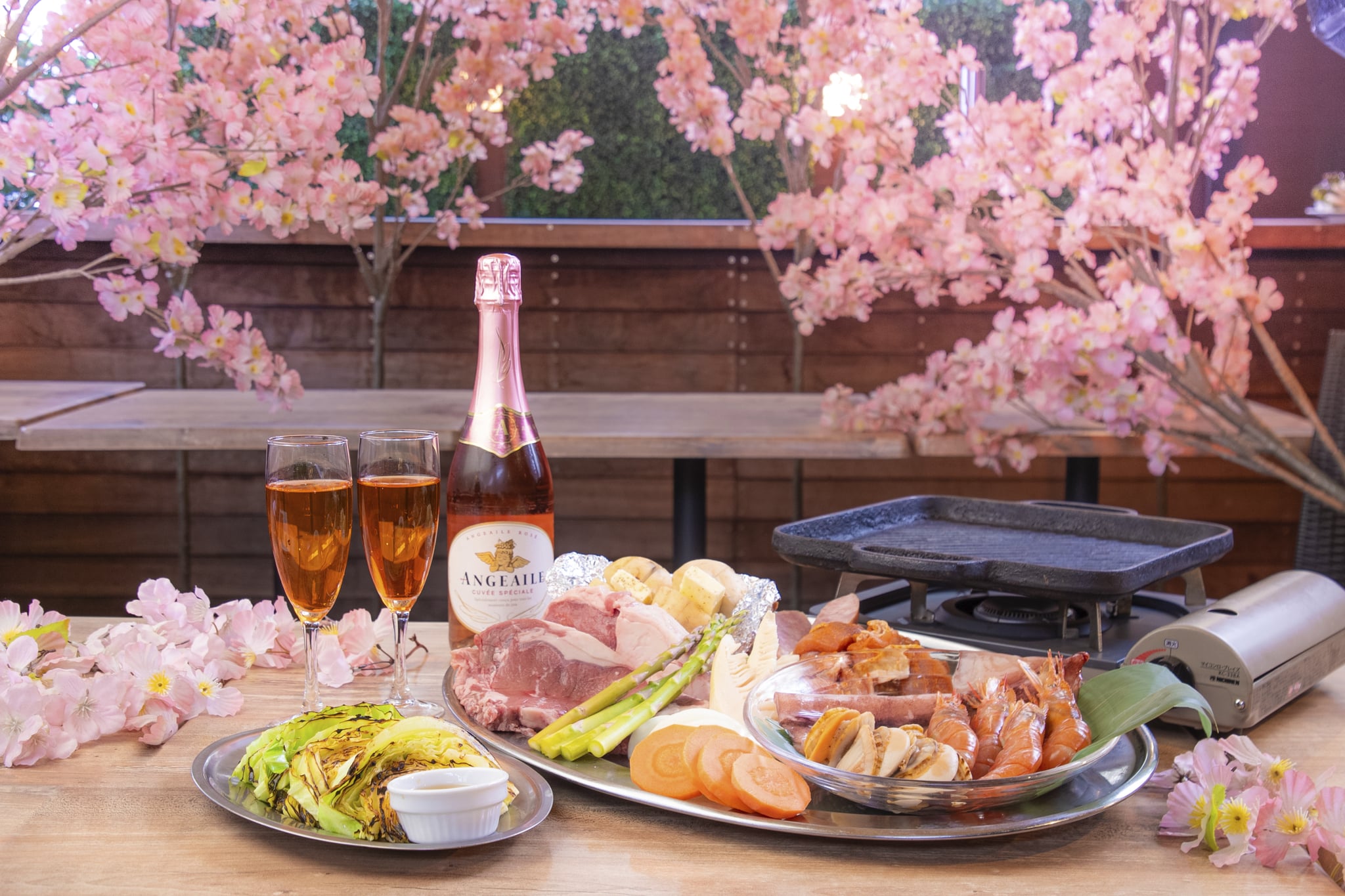 春風そよぐ赤坂見附で、桜と楽しむ特別なBBQシーズンが到来。 春限定の桜テラスで、お花見気分を味わいながら贅沢バーベキューはいかがですか? 乾杯は華やかなロゼスパークリングで。特別なひとときを彩ります。 プライベート感満点のVIPテラス付個室は、天候に左右されないルーフテラス仕様。 さらにカラオケ&ダーツ無料(投げ放題)の特別な個室を貸切でご利用可能。 接待や交流会、懇親会はもちろん、春のお花見パーティーにもぴったり。 ワンランク上のBBQ体験をぜひお楽しみください。