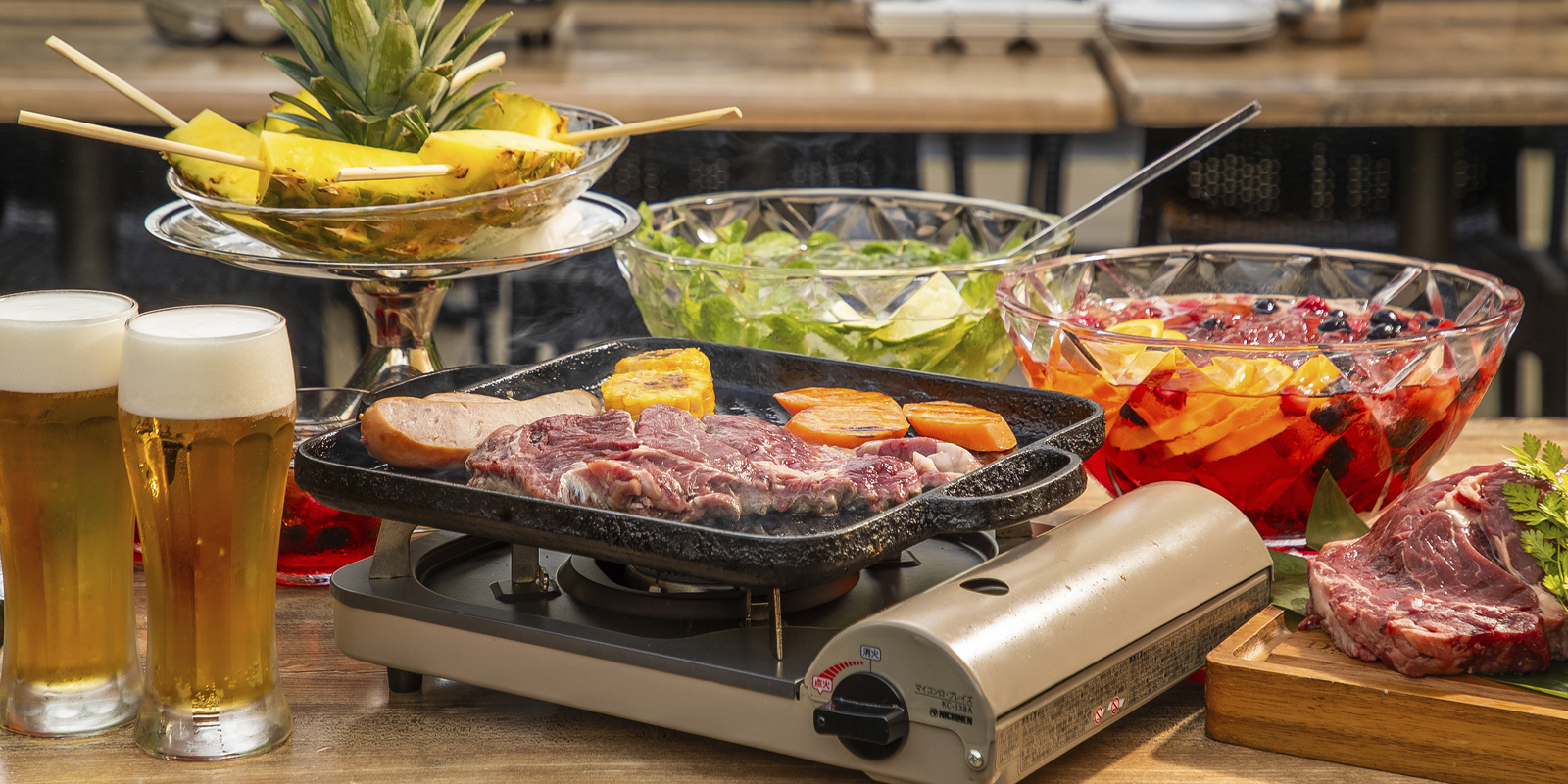 大人気の赤坂見附BBQがステーキの食べられる豪華BBQにパワーアップ! 当日予約もOK。雨でも安心の全天候型ルーフトップ付テラスは貸切利用も可能。 手ぶらで楽しめるテラスバーベキュープランなので、お仕事帰りは星空の下で乾杯! 週末は太陽の下、心地よい風を感じながらガーデンテラスでリゾート気分を満喫!!