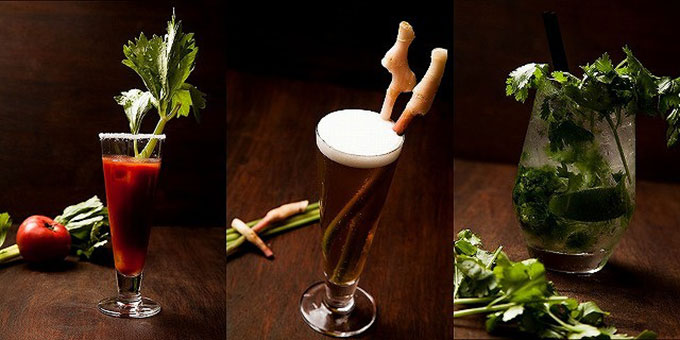 トマトの旨味と香辛料が刺激的なウォッカ―ベースのカクテル。セロリを大胆にトッピングしたPUBLICオリジナルのブラッディ・マリーです。